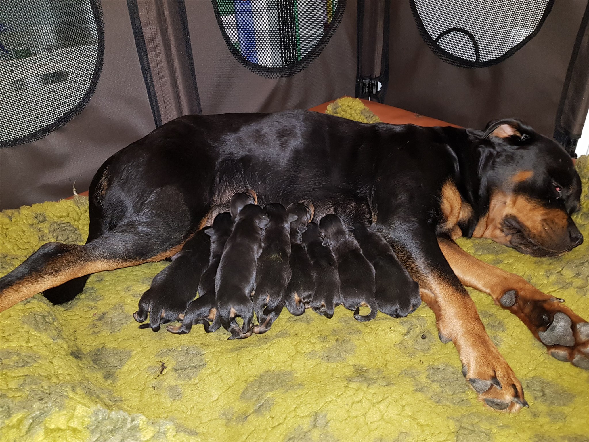 Uppfödning av Rottweiler, Dvärgpinscher och (1 kull Cocker Spaniel)
